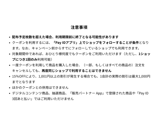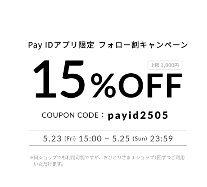 【15%OFFクーポン】5/23〜5/25限定!Pay IDアプリで配布中!